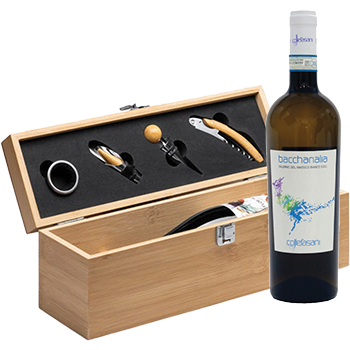 Cassetta in legno con set da vino e bottiglia BACCHANALIA FALERNO