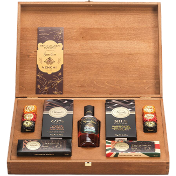 Box venchi con cioccolata fondente e rum invecchiato di 20 anni